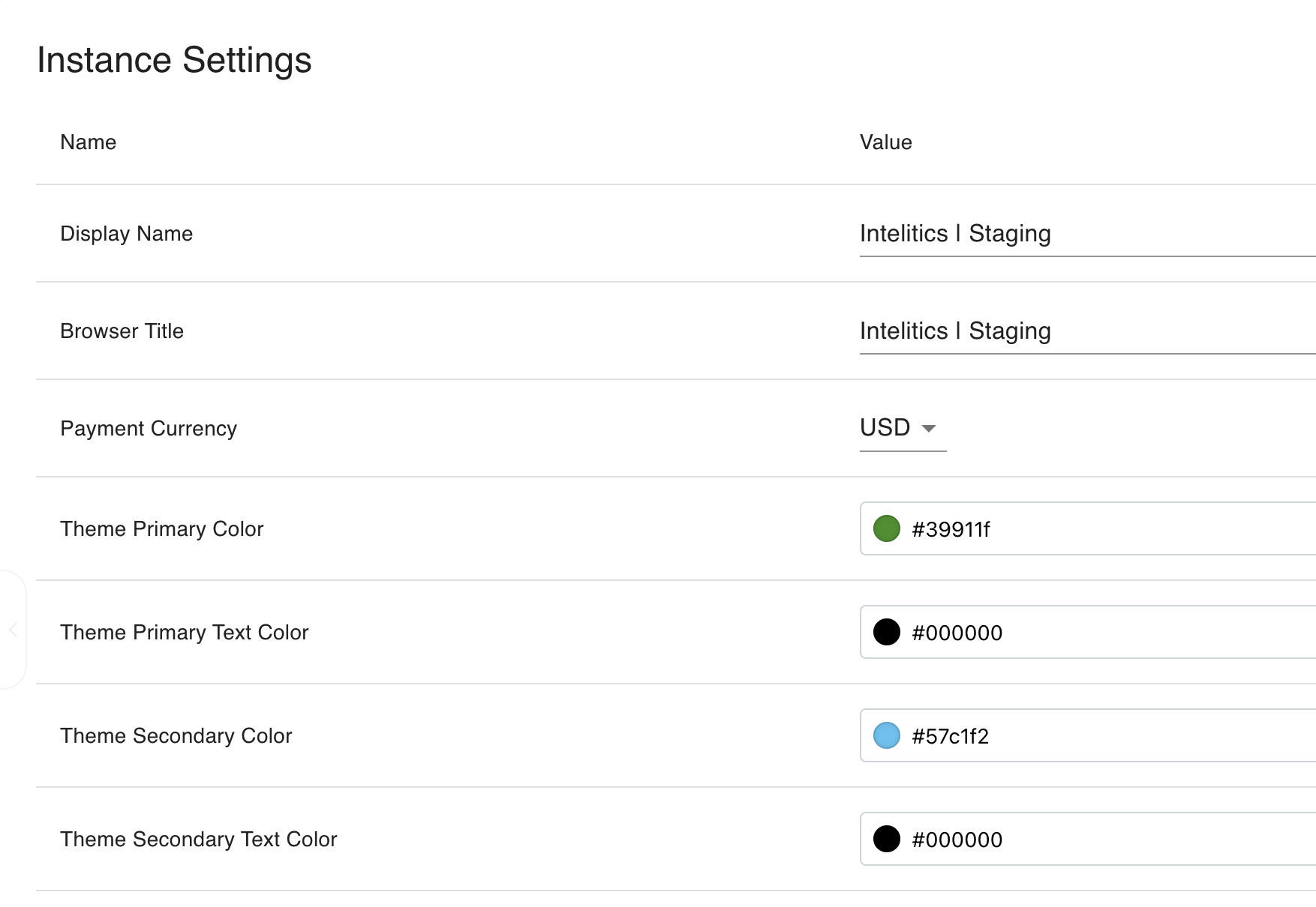 Instance Settings